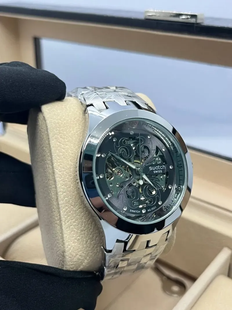 montre swatch fleur argente-noir🕰️ remise-2400da